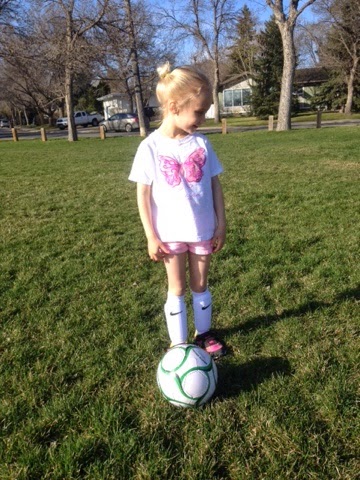 The teams are split into all-girl and all-boy at her age level; Sophia was ecstatic to find that her team is called the Butterflies! She plays twice a week. So far she has been more successful at kicking the ball on the field (as opposed to just running back and forth chasing the other players), and she told me that tonight she scored a goal--her first!